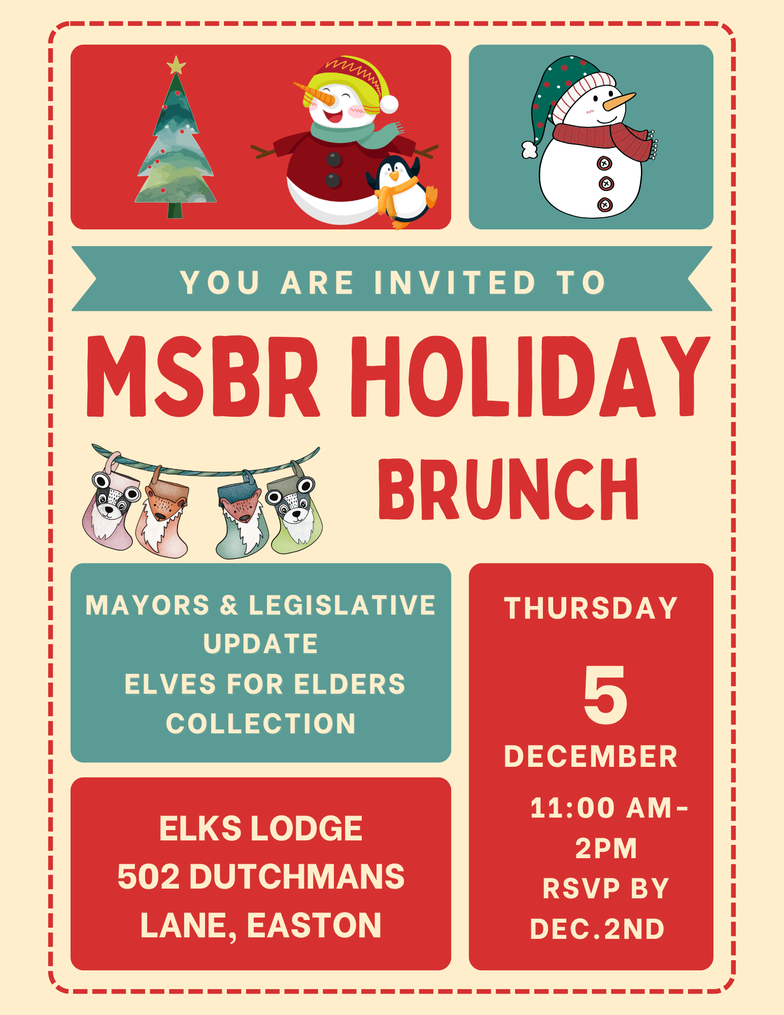 MSBR will hold a holiday brunch where our local Mayors will give updates on the towns they represent.