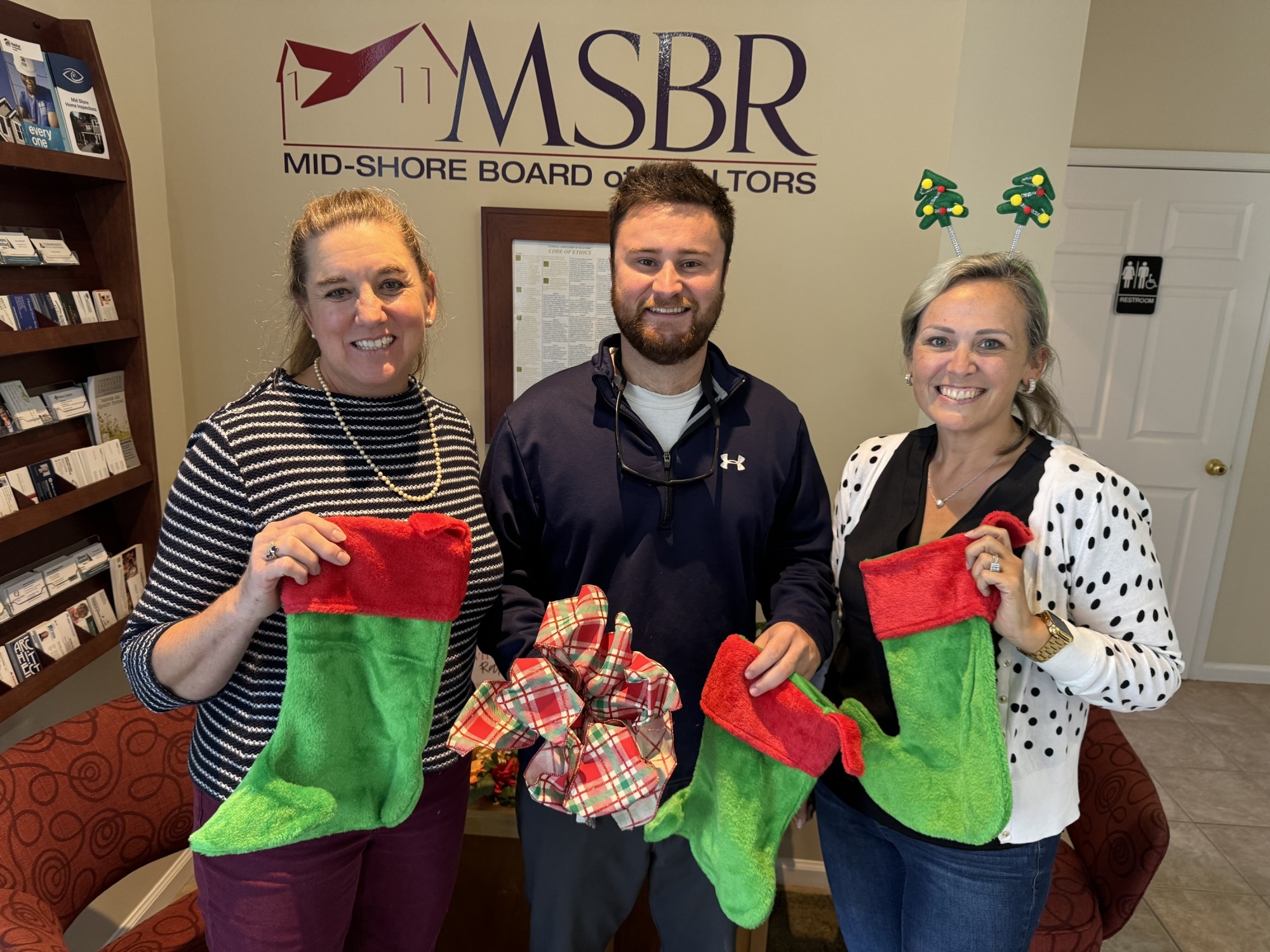 Karla Wieland-Cherry, Clark Higgins and Amy Betts are asking our members to start collecting items to put in holiday stockings that will go to Seniors at Partners in Care in Caroline & Talbot Counties and Seniors at Autumn Lake Healthcare at Chesapeake Woods in Dorchester.