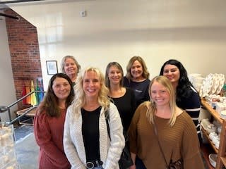 Jenn Dudley, Chair of the Membership Committee was joined by Shirley Coulbourne, Sarah Sherman, Erene Katris, Laura Anderson, LeeAnne Fleming and Brenda Andrew at Kiln Born where they painted bowls for Talbot County Empty Bowls.